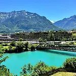 A River-Kissed Retreat With Iconic Jungfraujoch View Interlaken apartman könnyű elérhetőséget nyújt az olyan városi nevezetességekhez, mint az 5 percnyi sétára található az Interlaken Kelet kikötő. Az 1 hálószobás apartman modern szolgáltatásokat kínál, például Wi-Fi-t, valamint olyan alapvető dolgokat, mint a privát parkoló az autóval utazók számára.