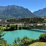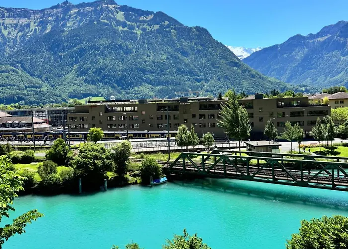 River-Kissed Retreat With Iconic Jungfraujoch View lägenhet erbjuder sina gäster boende i Interlaken. Den består av 1 sovrum, 1 badrum och ett komplett kök.